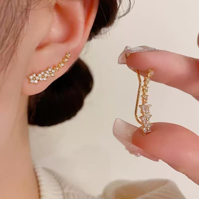 Seraphina Gems ピアス レディース 14金 メッキ 金属アレルギー対応 花 フラワー イヤークライマー キャッチレス イヤーカフ マイクロパヴェ ジルコニア 大人可愛い 人気上品 華奢 誕生日 プレゼント ギフトBOX付(ゴールド) [並行輸入品]