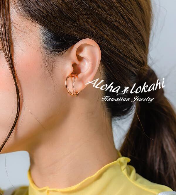 ハワイアンジュエリー イヤーカフ イヤカフ 大ぶり 2連 クロス ステンレス ローズゴールド フェイクピアス ノンホールピアス イヤークリップ リバーシブル ギフト プレゼント アクセサリー | Urban Chic