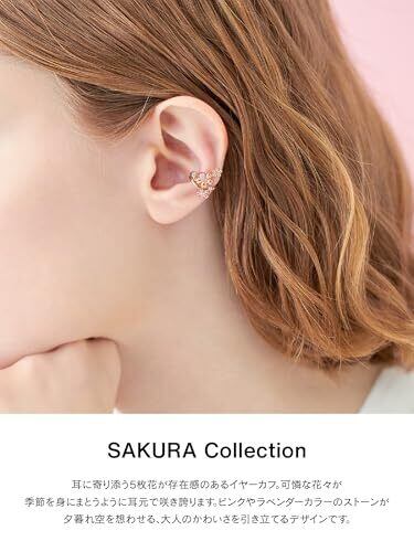 桜と空が重なり合う一瞬の情景に、春の想いを映した桜コレクション耳に寄り添う5枚花が存在感のあるイヤーカフ。可憐な花々が季節を身にまとうように耳元で咲き誇ります。ピンクやラベンダーカラーのストーンが夕暮れ空を想わせる、大人のかわいさを引き立てるデザインです。