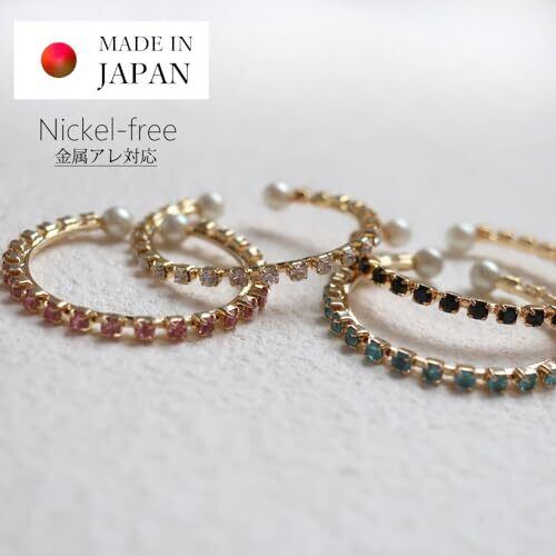 耳にかけるだけの簡単装着で、ワンランク上のお洒落を楽しめるイヤーカフ。 カラフルな4色のラインストーンが耳元のアクセントに。 耳を挟む部分がパールなので、長時間着けていても痛くありません。 【お肌に安心!ニッケルフリー】 金属アレルギーを引き起こす原因の「ニッケル」を 含まずに製造した商品ですので、お肌に優しく安心してご利用いただけます。 イヤーカフは1個(片耳)での販売です。 当店は創業1965年の国産アクセサリーメーカーです