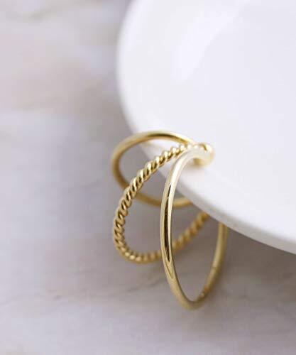 サイズ▼2.6cm×1.8cm※こちらの商品は片耳販売です。 素材▼【ゴールド色】真鍮に金メッキ、アクリルパール 立体感のある3連リングが耳元で存在感を放つ、大ぶりデザインのイヤーカフ。シンプルながら動きのあるフォルムが、カジュアルにも大人コーデにも映えるアクセントになります。 耳に引っ掛けるだけで着脱できるイヤーフック仕様。片耳タイプならではの抜け感があり、軽量でフィット感も良く、長時間つけても痛くなりにくい快適なつけ心地です。