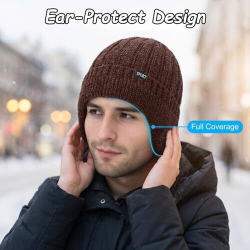 [Getrays] イヤーフラップ付きユニセックスウィンタービーニー、暖かいニットサーマル厚いフリース裏地付き帽子、防風性伸縮性のあるソフトで暖かいデイリーカフ付き帽子、スキー、サイクリング、ランニング、アウトドアアクティビティ用