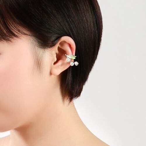 [素材]合金、シルバー色メッキ、貝パール、合成樹脂 [サイズ]幅:約13mm、縦:約21mm、横:約20mm エレガントさとキュートさを兼ね備えたすずらんモチーフが魅力のイヤーカフ。