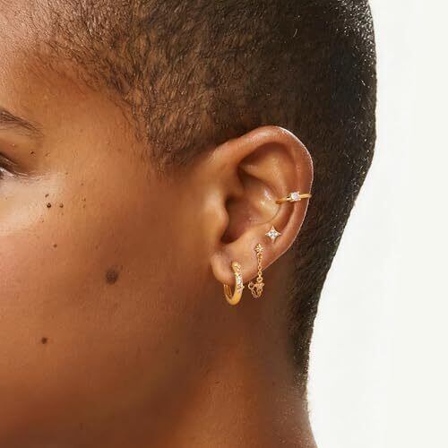 Diamday 3-4ペアセット ピアス イヤーカフ レディース 人気 金属アレルギー対応 シルバー925ポスト 14kゴールドメッキ 星 ジルコニア チェーン 重ね着け 小さい スタッドピアス 軟骨カフ 痛くない 可愛い シンプル DIY 女性 アクセサリー