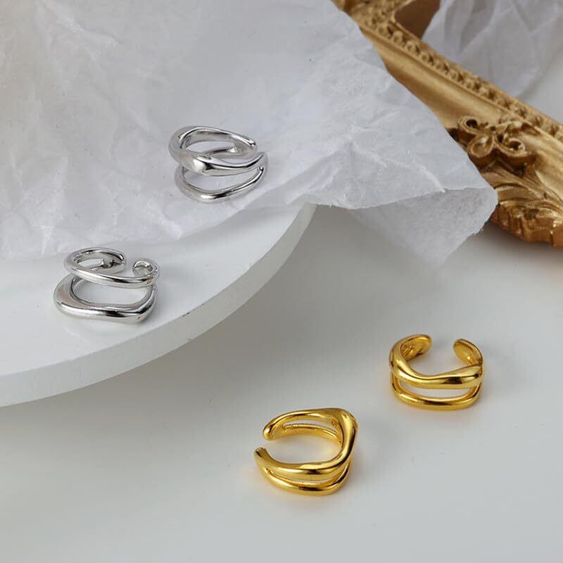 【ストレスフリーな2連デザイン】大きさの異なる2つのリングがポイント! シンプルながら華やかで、耳元を上品に彩ります。 【金属アレルギー対応&快適装着】ニッケルフリー真鍮製(銅メッキシルバー仕様)で肌に優しく、耳の軟骨部分に引っ掛けるだけの簡単装着。痛くなりにくい設計です。 【多シーンで活躍】オフィス、結婚式、パーティー、七五三、卒業式など、フォーマルからカジュアルまで幅広くマッチ。ノンホールの方でも気軽におしゃれを楽しめます。