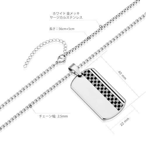 【クラシックなデザイン】ドッグタグは、IDタグとも呼ばれていて、兵士を識別するための認識票として誕生しました。見た目が洗練されるデザインから、ミリタリーの枠を超えて、定番のアクセサリーとして一般的なファッションに使用されるようになります。KRKC&CO製品は一目でそれとわかるチェッカーボードデザインを採用した、クラシックでエレガントなドッグタグペンダントです。人気のあるファッションアクセサリーです。 【肌に優しい素材】医療用メスにも使用されているサージカルステンレス316L素材を採用しており、錆びにくく水に強い、お風呂、温泉、プール、海でも使用可能、また金属アレルギーの方でもご使用いただける。素肌にはもちろん、長袖インナーの上からの着用もおすすめです。