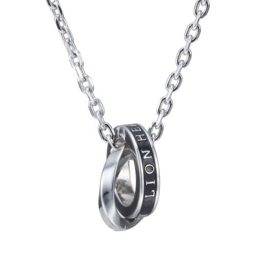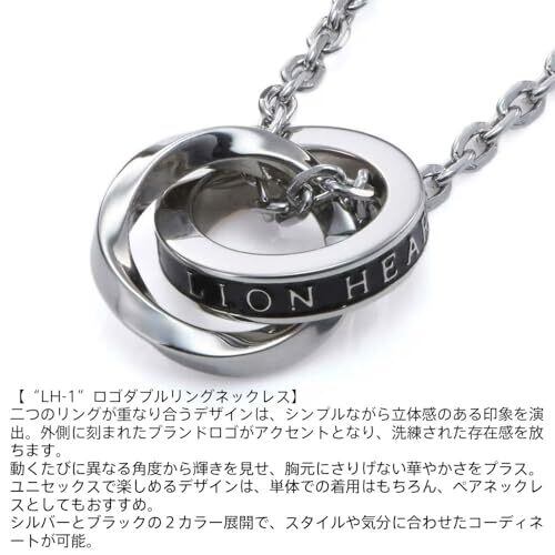 [ライオンハート] ラッピング済 ロゴ ダブルリング ネックレス サージカルステンレス316L 金属アレルギー対応 別注ポーチ付き メンズ ブランド