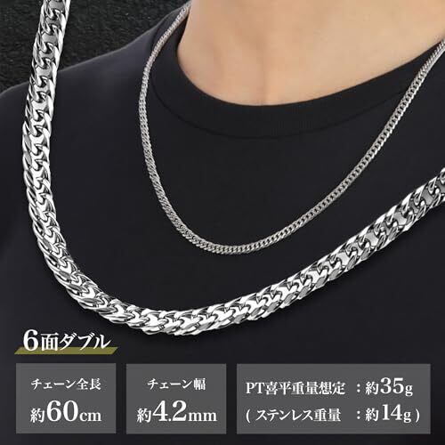 PLUSTER 喜平 ネックレス メンズ (6面ダブル シンプル) ステンレス 316L 金属アレルギー対応 キヘイ チェーン (ギフトボックスセット) / 男性 女性 レディース メンズ ジュエリー アクセサリー 誕生日 プレゼント