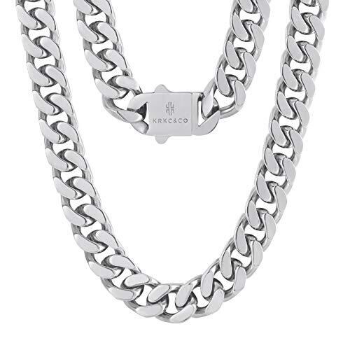 KRKC&CO ネックレス メンズ 幅8/12/14mm k18金メッキ 人気 喜平 マイアミキューバンチェーン 太め サージカルステンレス 2面カット HIPHOP ラッパー B系 アクセサリー ギフトお祝い