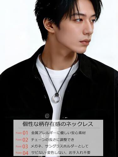 [FaithHeart]ネックレス メンズ グラスホルダー ネックレス サージカルステンレス 金属アレルギー対応 リングペンダント 革紐 人気 アクセサリー 男性