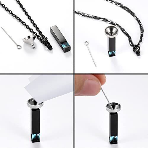 Flongo ネックレス ペンダント スティック 直方体 香水瓶 遺骨ペンダント アクセサリー メモリアル ペアネックレス カップル お揃い 無料刻印 誕生石 1月 ガーネット 漏斗付き ステンレス ジルコニア 開け可能 メンズ レディース 記念日 誕生日 プレゼント シンプルスタイル(ブラック)