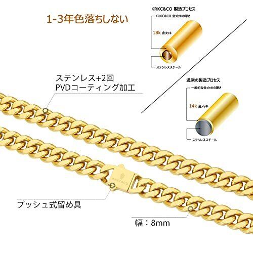 KRKC&CO ネックレス メンズ 幅8/12/14mm k18金メッキ 人気 喜平 マイアミキューバンチェーン 太め サージカルステンレス 2面カット HIPHOP ラッパー B系 アクセサリー ギフトお祝い
