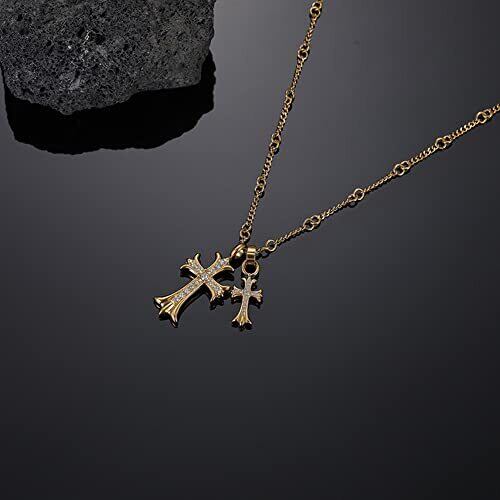 【十字架ネックレス】シンプルで着用しやすいデザイン、派手過ぎず、地味過ぎない、ちょうど良い存在感が魅力のダブルクロスネックレスです。普段使いでもフォーマルでも大活躍する、かっこいいメンズネックレスです。 【Rockyu】ダブルクロスペンダント キラキラ ファッション 十字架ネックレスチェーン かっこいい クロス アクセサリー【素材】チタン ジルコニア【サイズ】ペンダント:小さい十字架長さ24mm 大き十字架長さ37mm チェーンサイズ:長さ50+5cm 重量:15g