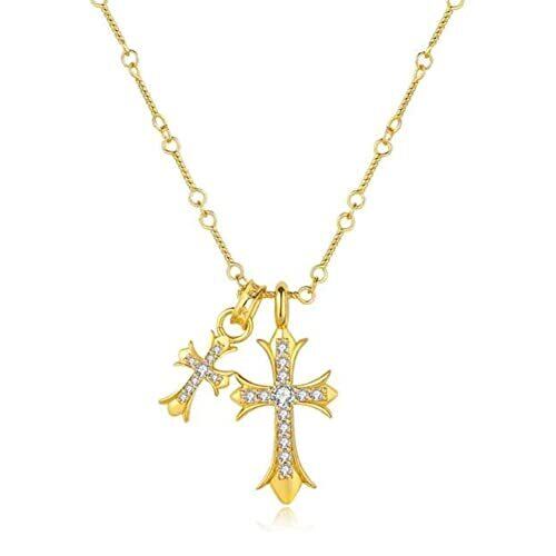 [Rockyu] ネックレス メンズ ブランド シルバー ゴールド 十字架ネックレス クリア ジルコニア キラキラ ダブル クロスペンダント チタン 金属アレルギー対応 記念日 誕生日 パーティー ファッション アクセサリー