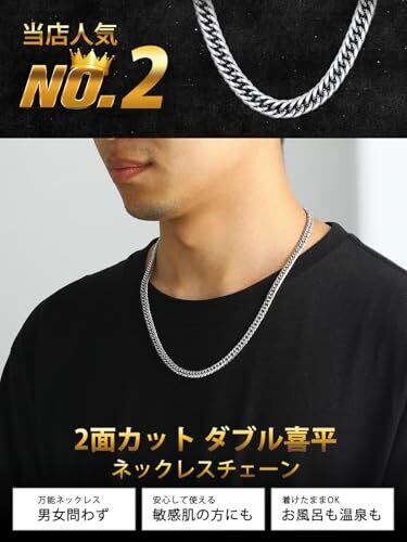 【ダブル喜平ネックレス】シンプルなデザインでカジュアル、ストリート、韓国ファッションとどんなコーデにも取り入れやすい喜平チェーンネックレス。上品に光を反射するスクエアカットで表面をカットし、胸元であなたのこだわりが光り輝く。 【ステンレスネックレス】地金はステンレスを採用。「錆びにくい」「アレルギー反応を起こしにくい」ので、お肌に優しい素材として人気です。 【色も!太さも!長さも選べる!】3.5mm、6mm、9mm、12mmの4太さ、シルバー、ゴールド、ブラックの3色、46cm、51cm、56cm、61cm、66cm、71cm、76cm、91cmの8長さ、全72種類を揃えました!