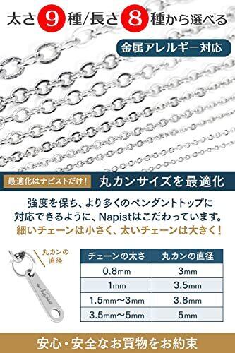 【引っ張っても切れにくい ネックレス チェーン 】一般的なネックレスチェーンはチェーンと金具を接続している丸カンが開いて切れやすい問題がありましたが、ナピストの ネックレス チェーン は丸カンの接合部を溶接することで強い力が加わっても切れにくく当社実験で約4倍の強度を持っていますのでより長くお使い頂けます。 【キラキラ輝く平あずきチェーン】Napistの あずきネックレスチェーン は 上品に輝くワンランク上の平あずきチェーンを採用しています。あずきチェーンは各ピースの向きが交互に連なりますが、その各ピースが一般の丸型よりも両面を平らにカットしている平あずきの方が光を受けてキラキラと輝きます。またあずきチェーンは各ピースの隙間がほど良い抜け感を演出し派手過ぎずない上品さを醸しだしてくれます。トップを着けずチェーンだけでもおしゃれなチェーンです。