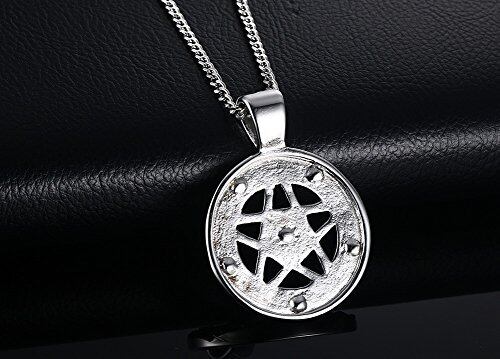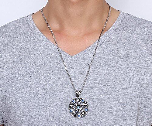 Rockyuブランド コインネックレス メンズ ステンレス 魔法陣 五芒星ペンダント ラインストーン サファイア 星スター 男性ネックレス チェーン長さ60㎝ 彫刻風 カッコいい パーティ 誕生日 人気 ギフト
