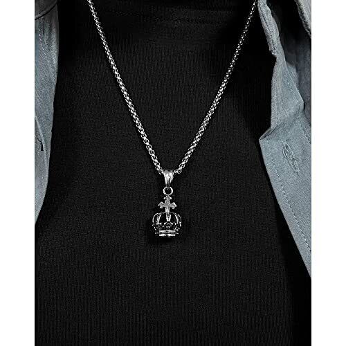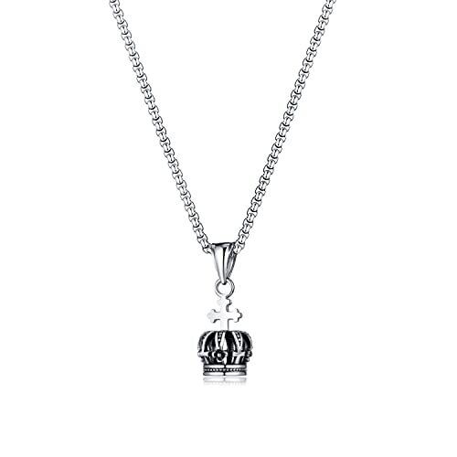[Rockyu] ネックレス メンズ シルバー 王冠ネックレス ステンレス鋼 金属アレルギー対応 十字架クラウンペンダント 透かし彫り シルバー チェーン55cm 結婚式