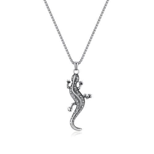 [Rockyu] ネックレス メンズ ステンレス トカゲペンダント アニマルモチーフ シルバー&ゴールド チェーンネックレス ヒップホップ系 ストリートアクセサリー 誕生日ギフト