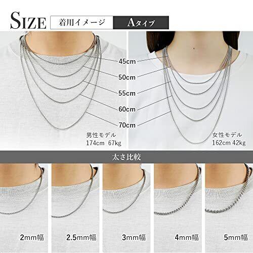 【シンプルでスタイリッシュなベネチアンチェーンネックレス】 四角いコマが連なる滑らかなシルエットがとても美しいベネチアンチェーンネックレスです 。 チェーンネックレスはシンプルでスタイリッシュなおしゃれが楽しめるアイテムです。お手持ちのチャームとネックレスを合わせて楽しむことも可能です。 【バリエーション豊富な40種類】 カラーがシルバー、ゴールド、ピンクゴールドの3色。チェーン幅は2mm,3mm,4mm、長さは45cm,50cm,55cm,60cm,70cmまで8種類の計40種類をご用意しておりますのでお好みのカラー、サイズのチェーンが選べます。