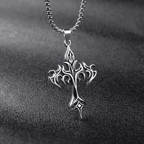 ✅【デザイン】迫力と洗練を兼ね備えたデザインが魅力の一品です。炎と剣をイメージさせる独特な十字架モチーフは、見る人を引き付けるインパクト抜群の仕上がり。男性らしさを強調しつつ、スタイリッシュな雰囲気をプラスします。トップを外してチェーンのみで使用することもでき、チェーン自体が存在感を放つデザインのため、シンプルなアクセサリーとしても楽しめます。 ✅【素材】チェーンはステンレス合金なのでサビや汚れに強く耐久性抜群!金属アレルギーが出にくいことも特徴です。お手入れも簡単、質感も良く高見えする素材となります。ペンダントトップは合金素材