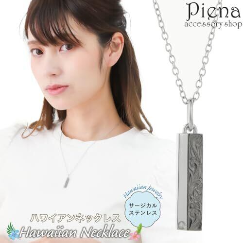 [Piena(ピエナ)] サージカルステンレス製 一石 ワンストーン バー ハワイアンジュエリー 模様 ネックレス メンズ レディース