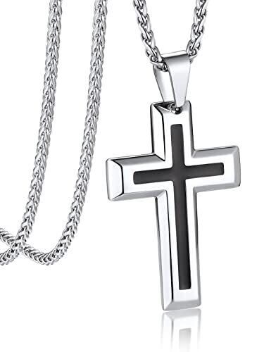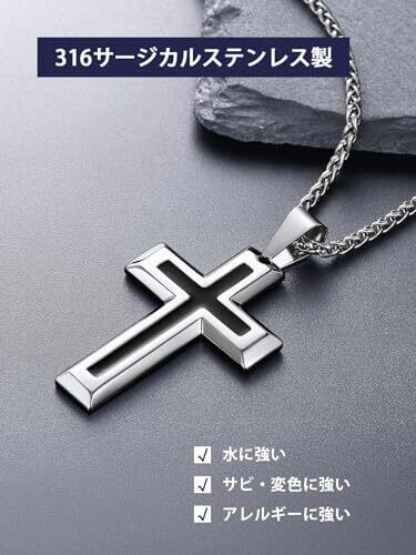 【クロスネックレス】定番人気のクロス、さりげない大人のスタイリングな印象を与え、男性に非常に人気があるネックレスです。ミニマルでも洗練されたアイテムで4種デザインが展開されています、シンプルなコーディネートからや個性的なスタイルまで幅広く対応するアクセサリーです。 【金属アレルギー対応】医療用具に使われる316Lサージカルステンレスを採用しますから、錆びや変色が起きにくいという特性を持つていることから、汗や水に強くお手入れが簡単。金属アレルギーの方でも身に着けることができます。耐食性が高いため、海やプール、シャワーなど、24時間着けっぱなしでもOK。※ブラックネックレスの表面はPVDコーティングを施してるため、耐久性が強いです。