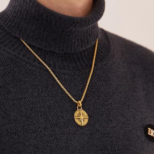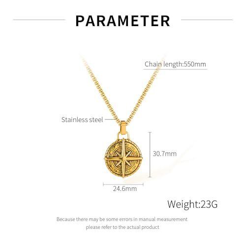 【コンパス形ネックレス】 シンプルで美しいコンパス型ペンダントが、道を示す象徴として身につけることで自己肯定感や自信を高め、人生における方向性をしっかりと見つけられるお守りになります。着けることで心強い存在に。 【Rockyu ネックレス】 メンズ用ロングチェーン付きコンパスデザイン。高品質なステンレススチール製で金属アレルギー対応。滑らかで肌触りが良く、長時間の着用でも快適に過ごせます。ネックレスの長さは550mm、ペンダントのサイズは30.7mm×24.6mm、重さは23gです。