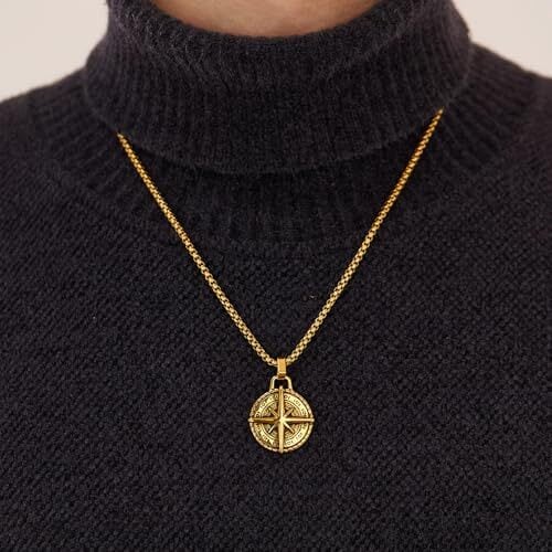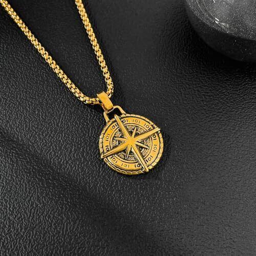 [Rockyu] ネックレス メンズ ロング ロープチェーン コンパス 星形 吊り下げ ステンレス 金属アレルギー対応 ゴールド シルバー お守り ギフト プレゼント クリスマス