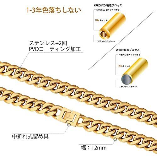 【セット】KRKC&CO 喜平ネックレス&ブレスレット メンズ 幅12mm マイアミキューバンチェーン 18k ゴールド キヘイ HIPHOP プレゼント 誕生日 誕生日 ギフト クリスマス