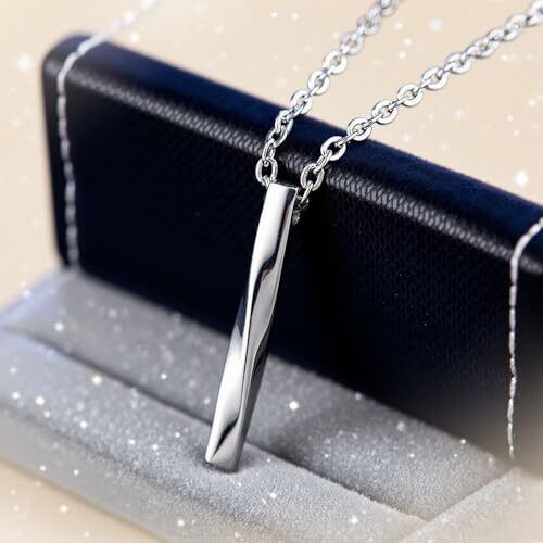 [Phyxiul] ネックレス メンズ シルバー 人気 合金製 個性 アクセサリー めんず プレゼント 誕生日 記念日 スティック ツイスト ペンダント シンプル デザイン 60cm