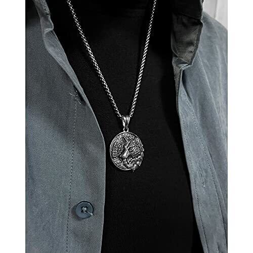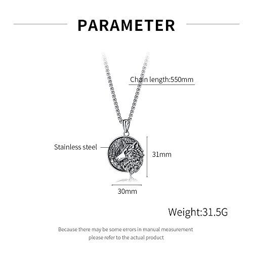 [Rockyu] ネックレス メンズ シルバー 狼ネックレス ステンレス鋼 金属アレルギー対応 ヴァイキング風ペンダント オオカミ コイン 動物モチーフ チェーン55cm パーティー