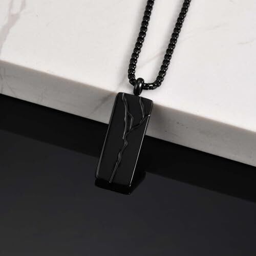 【亀裂模様のプレートネックレス】幾何学的なプレートに繊細な亀裂模様を刻み、強さと個性を象徴するデザイン。シンプルながらも存在感があり、日常スタイルにアクセントを加えます。 【Rockyu ネックレス ステンレス メンズ】高耐久のステンレス素材を使用し、色褪せにくく、金属アレルギーに配慮した設計。ブラックとシルバーの2カラー展開で、ペアアクセサリーとしても人気。ペンダントサイズ:2.4cm×1cm、チェーン長さ:50+5cm、重量:約11g。