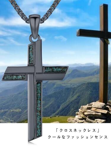 [lwoowl] 十字架 ネックレス メンズ クロス ペンダント 黒 金属アレルギー対応 ブラックゴールドメッキ ターコイズ 男性 人気 アクセサリー ヴィンテージ風 ゴシック パンク系 ファッション ジュエリー 存在感 かっこいい プレゼント クリスマス バレンタイン 誕生日 父の日 ギフト
