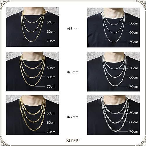 [ZIYMU ジーム] ネックレス フレンチロープ チェーン サージカルステンレス316L 幅 3mm 5mm 7mm 長さ 50cm 60cm 70cm 2色 n03