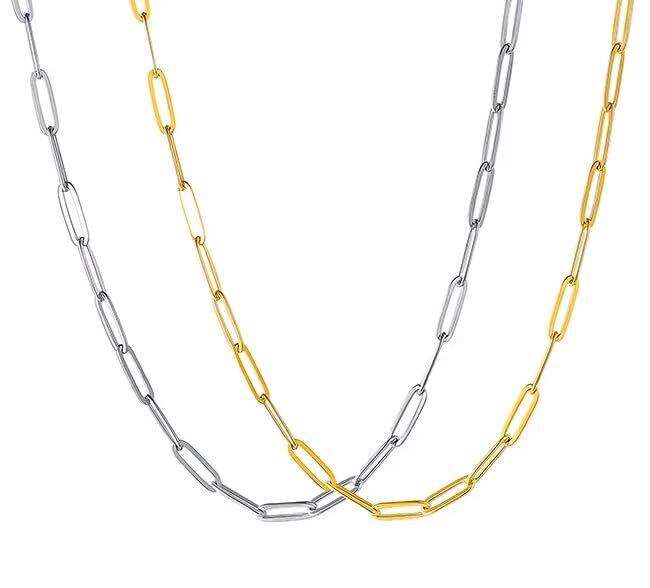 普段使いに最適なクリップチェーンネックレス!メンズにもレディースにもおすすめのデザインでどなたにでもおすすめできるシンプルなユニセックスチェーンネックレス!チェーン幅は4mmで夏服にはもちろん冬服にもアクセントとしてコーディネートできる人気ネックレス。 フォーマルスタイルにもカジュアルスタイルにも相性がよく、シーンを選ばずどんな時でも着用OK! カラーバリエーションはゴールドとシルバーの2色展開。 きれいな輝きで存在感を強調しオシャレにコーディネートすることができます。 韓国系ストリートファッションとの相性抜群で、これは外せない1つは必ず持っておきたいネックレス!