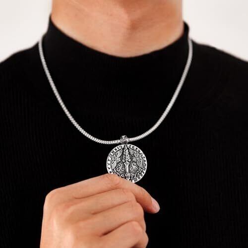 [Rockyu] ネックレス メンズ ステンレス チェーン シルバー ヴィンテージ調 北欧ルーン オーディンの烏 モチーフ ペンダント 金属アレルギー対応 ファッション アクセサリー 誕生日 クリスマス バレンタイン