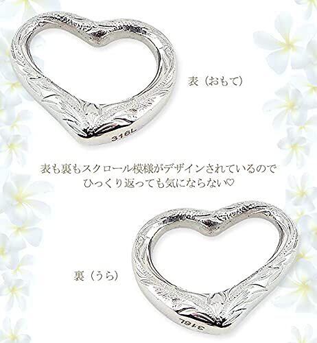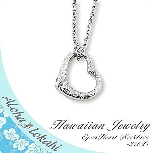 ハワイアンジュエリー ネックレス ステンレス アクセサリー ハート スクロール アシンメトリー オープンハート シルバー レディース メンズ ペンダント あずきチェーン付き 50cm