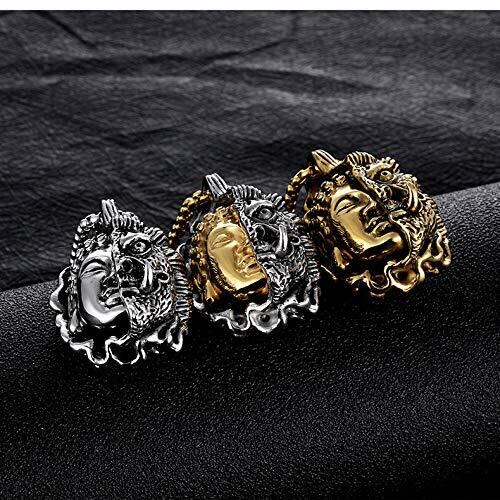 [Rockyu] ネックレス メンズ ブランド シルバー ゴールド 18金 ステンレス 一方 悪魔 一方 ブッダ ペンダント カッコいい 菩薩 宗教風 厄除け お守りネックレス 男女兼用 記念 ファッション プレセント