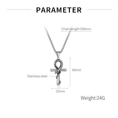 [Rockyu] 十字架ネックレス メンズ シルバー かっこいい 蛇 タイタニウム ステンレス 金属アレルギー対応 マンバ蛇 クロスペンダント 蛇巻きデザイン アンティーク風 お守りアクセサリー 年上 ギフト