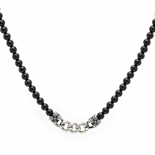 [シルバーワン] クロス ブラック ビーズ ネックレス メンズ ko オニキス ステンレス マグネット式