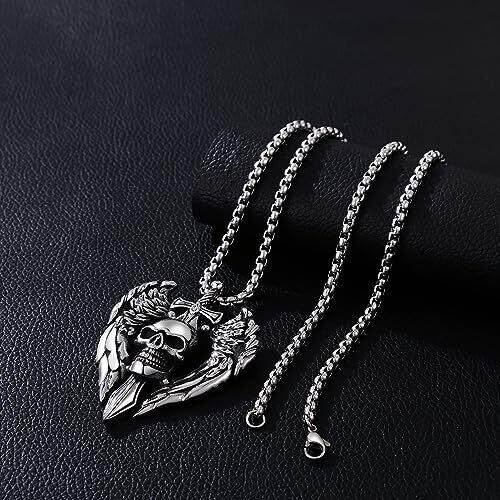 【スカル ステンレス スチール ゴシック パンク ネックレス】 ユニークなスカルのネックレス、天使の羽のスカルデザイン、レトロな処理; スカル シンボルは知恵、再生、幸運、不死、活力、強さ、力を表します; スカル ジュエリーを身に着けると、男性的で強い気分になれるだけでなく、ファッションの中でも目立つようになります。群衆から目立ち、とてもファッショナブルです。 【高品質ステンレス材質】手磨き、優れた研磨プロセス、キラキラしています。錆びないし、アレルギー対応し、耐摩耗性や耐食性もおり、衛生上好ましく、安心して身につけられます。