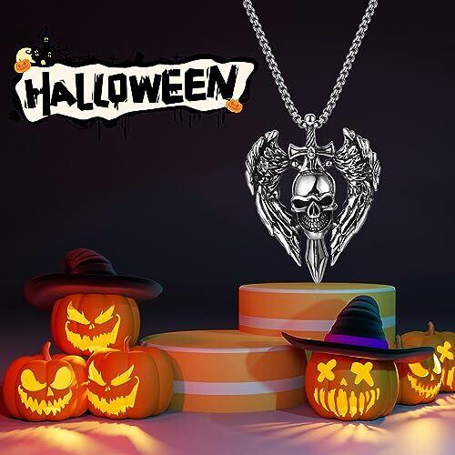 [Flongo] スカル ペンダント パンク ネックレス メンズ チェーン スチール ゴシック 男性 ジュエリー 人気 ステンレス アレルギー対応 ギフト ハロウィーン プレゼント パーティー 袋付き