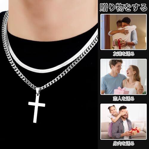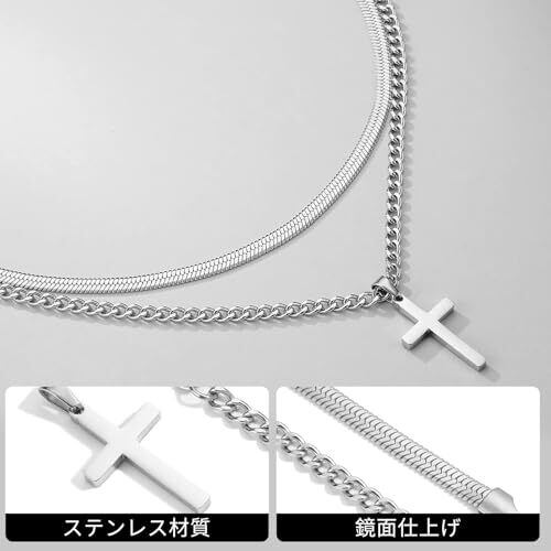 【ネックレス】このユニークな十字架ネックレスは男女ともによく、魅力的でクールな雰囲気を表現しています。2層設計で、シンプルなスタイルは単独で身につけることもできるし、洗練されたネックレスと重ねることもできる。 【高品質材質】十字架ネックレスは高品質ステンレスで丁寧に作られている、銀鎖は高品質ステンレス鋼で作られ、耐久性と防錆性、酸化変色しにくく、優れた装着体験をもたらします。 【経典永遠】十字架模様のデザインを採用し、表面は研磨処理され、光沢があり、目を引く。このステンレス十字ネックレスは日常的に完璧に装着されており、どんな服装やジュエリーにも合わせることができます。