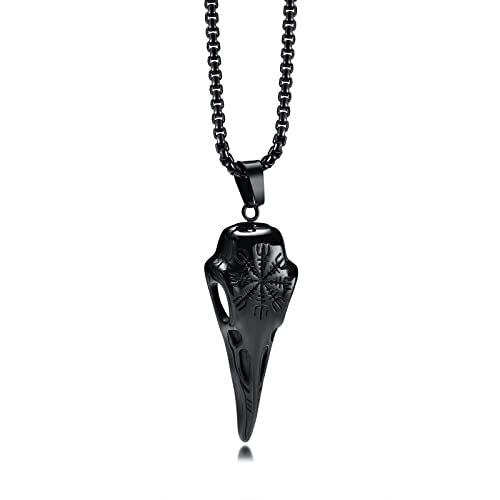 [Rockyu] ネックレス メンズ シルバー カラスネックレス ステンレス鋼 金属アレルギー対応 ヴァイキング風ペンダント 鴉 鳥モチーフ 頭蓋骨 北欧神話 アクセサリー 父の日ギフト