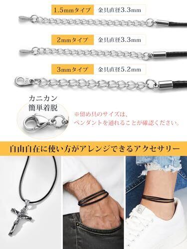 [U7] 紐ネックレス チェーン 革紐 ネックレス用 レディース 細身 1.5mm ワックスコード ステンレス 金属アレルギー対応 指輪用チェーン ペンダント用 耐水性