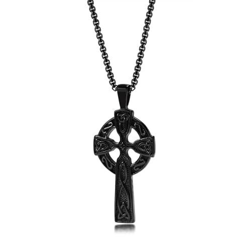[Rockyu] ネックレス メンズ ステンレス ケルティッククロス ペンダント 62mm 男性用 アクセサリー チェーン ブラック/ゴールド/シルバー クリスマスプレゼント