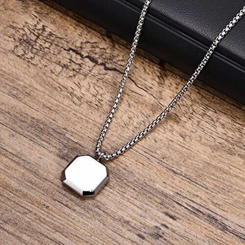[sakuto] ネックレス メンズ ターコイズ プレート 八角形 ステンレススチール シルバーカラー 45cm 50cm 55cm