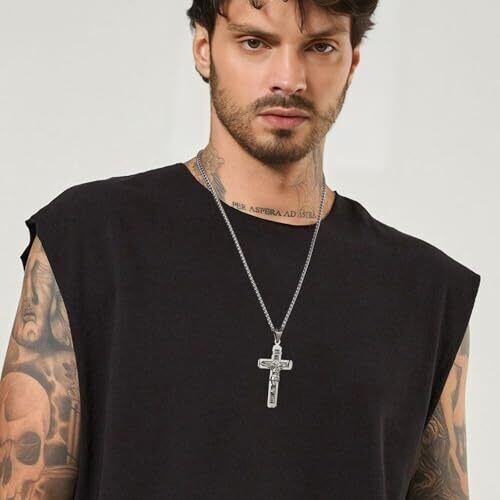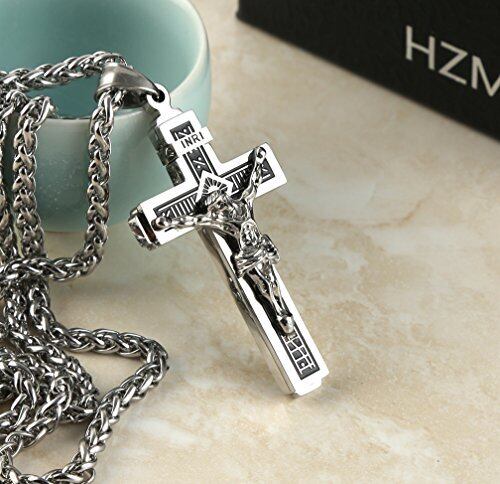 スタイリッシュな聖イエス十字架ペンダント、キリスト教へのあなたの信念の素敵なショー。 金属:ステンレス鋼は堅牢で、変色や錆が容易ではありません、それは簡単に永続的なジュエリーデザインのための理想的です 男性用または女性用の22インチチェーン。ペンダントサイズ:5.6 x 2.9 cm / 2.2 x 1.1インチ ブランド名「hzman」のロゴが印刷された美しいギフトボックスを含む。ギフトとして購入する場合-あなたはそれが素敵に見えることを確認することができます。