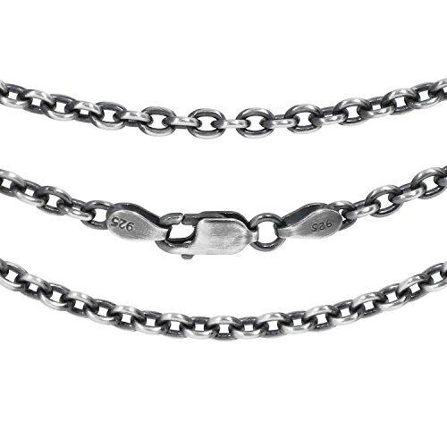 ※いぶしの濃さ・幅・長さ違いのチェーンもご用意しております。選択肢よりお選び下さい。(※現在ご覧になっているページの商品は【幅2.8㎜/50cm/薄め】が選択されています。) 商品データ 素材・シルバー925 金具は商品画像をご参照下さい。 小さめのトップに合わせ易い太さです。 メンズ レディース シルバー